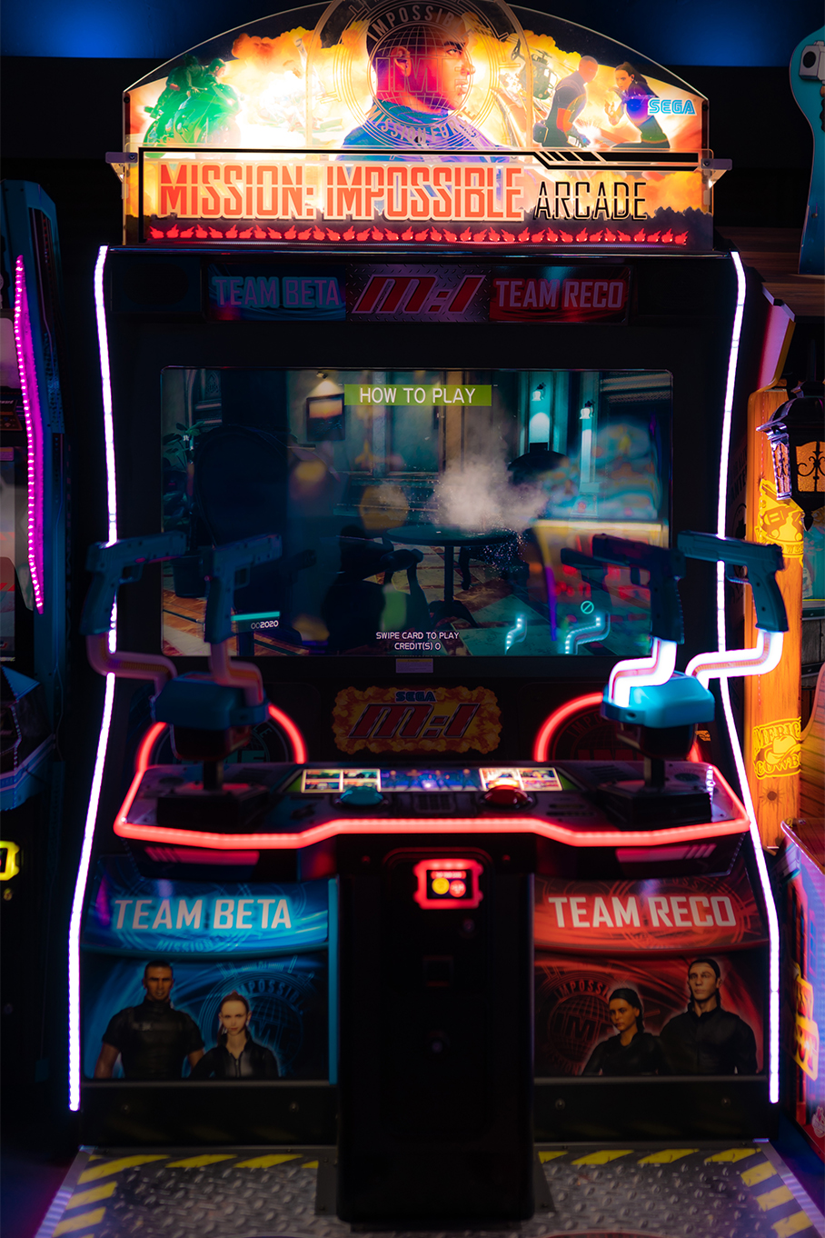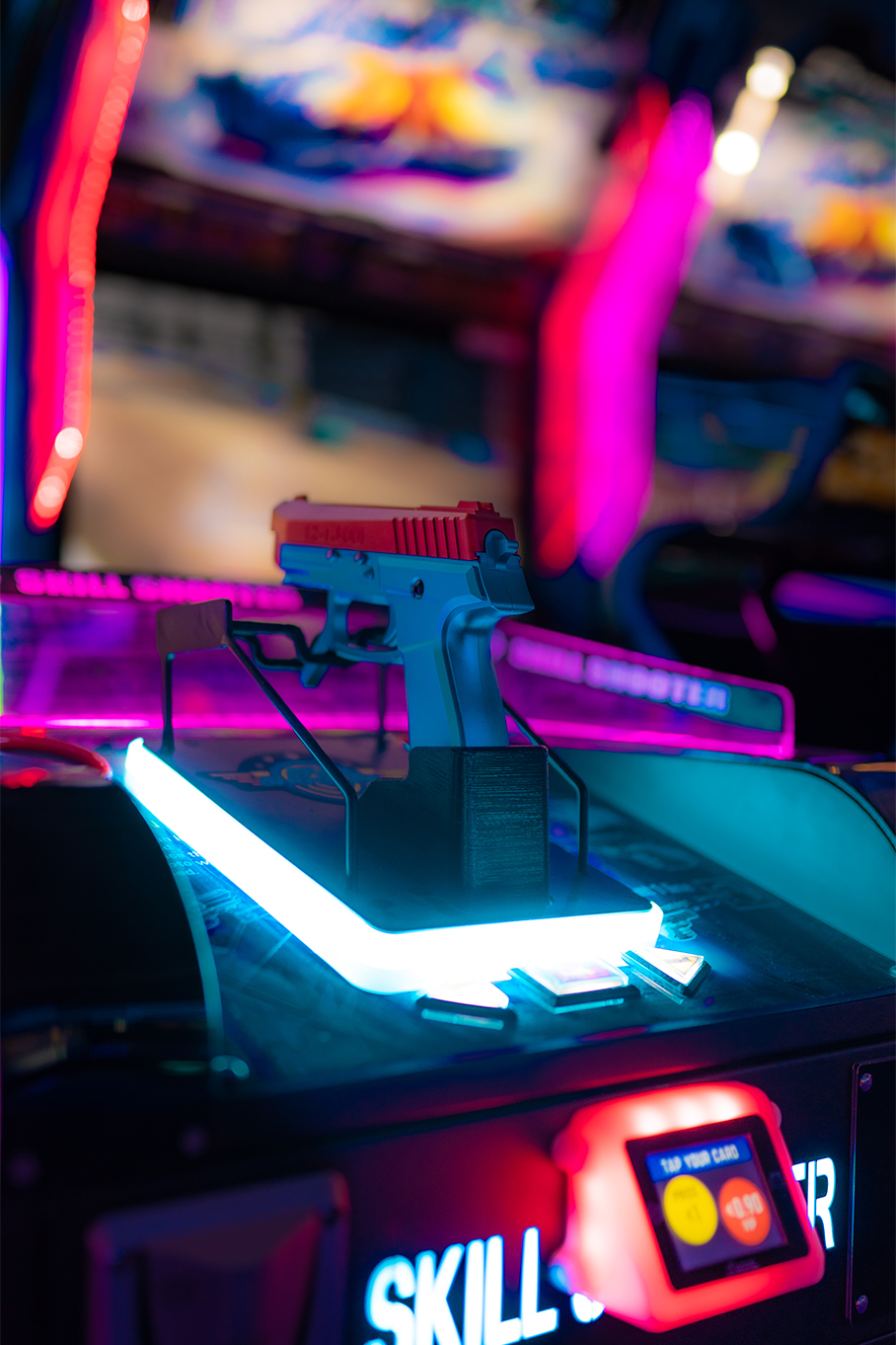 Les jeux d'arcade fonctionnent avec une carte RFID à charger à l'accueil, puis à scanner sur la borne d'arcade.