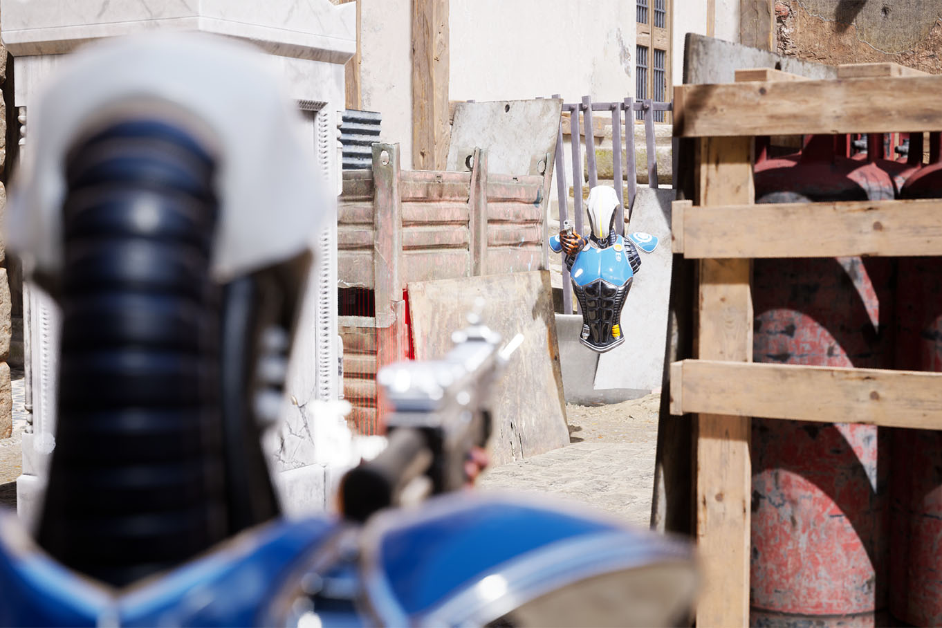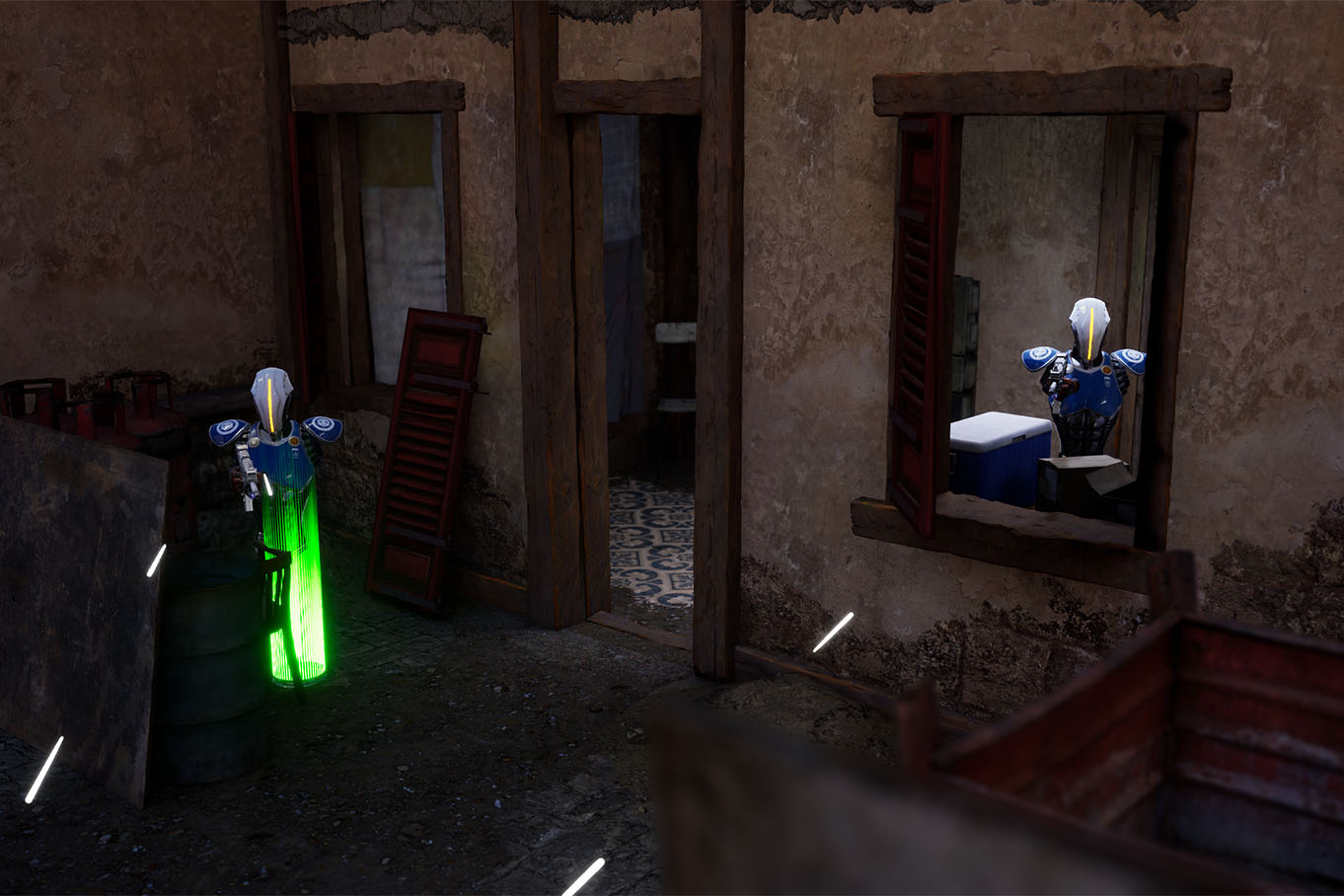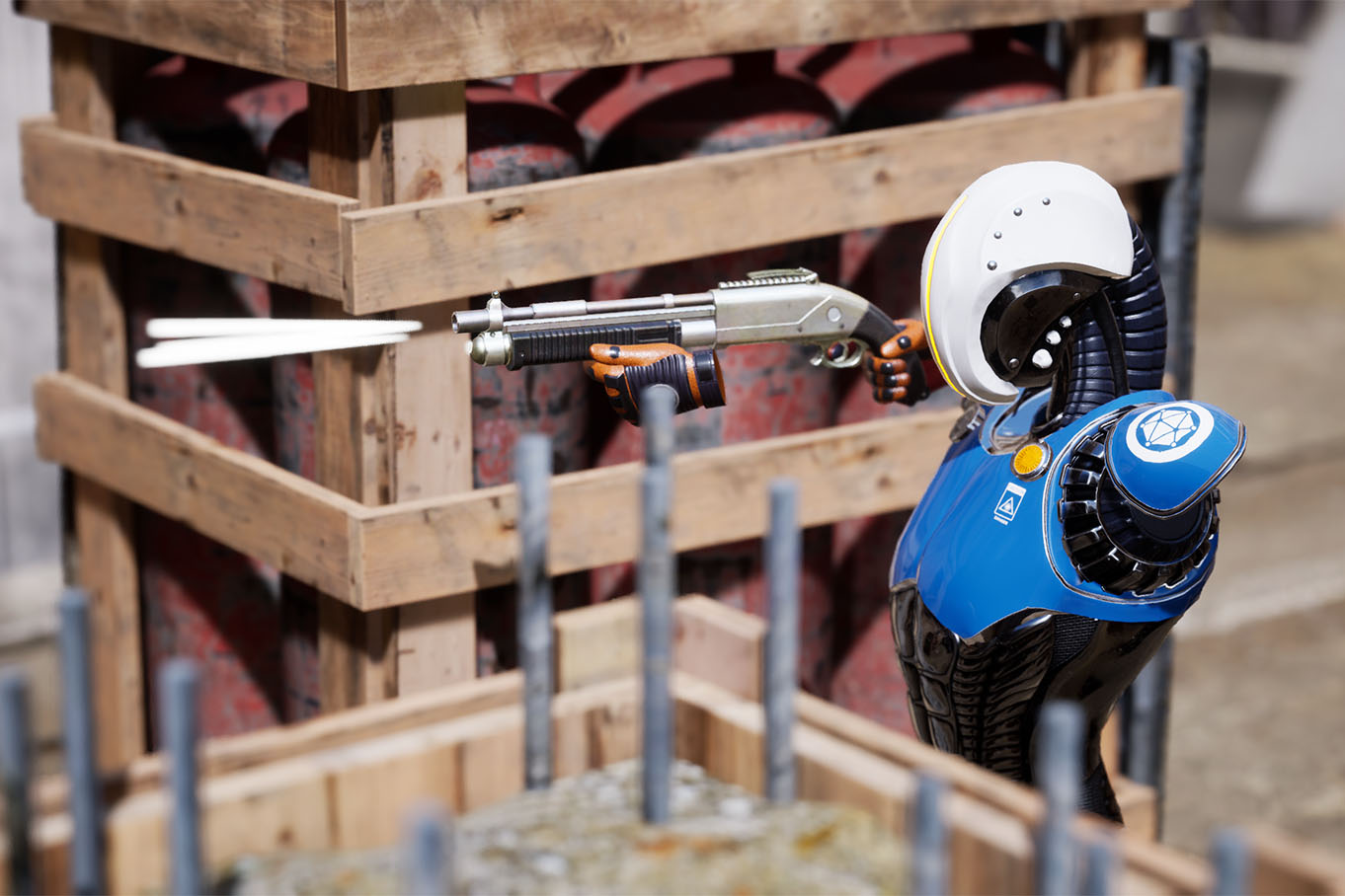L’équipement mis en place permet de se déplacer librement sur une surface de 450 m², sans ordinateur embarqué sur le dos. Vous êtes uniquement muni de votre casque de réalité virtuelle et de votre arme.
